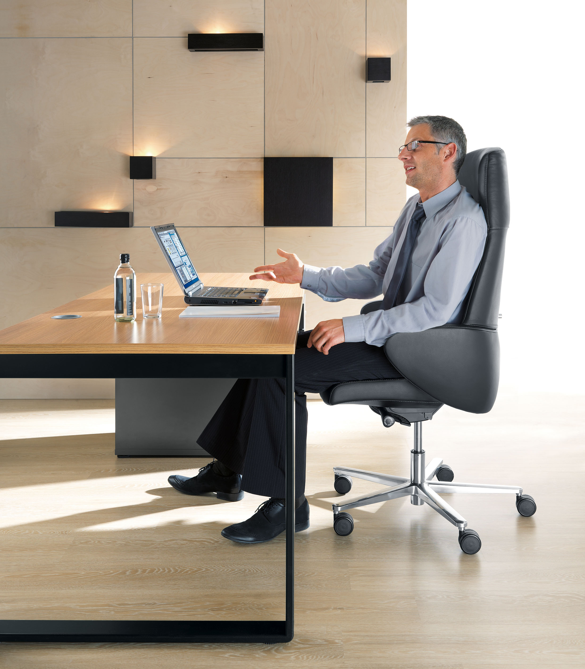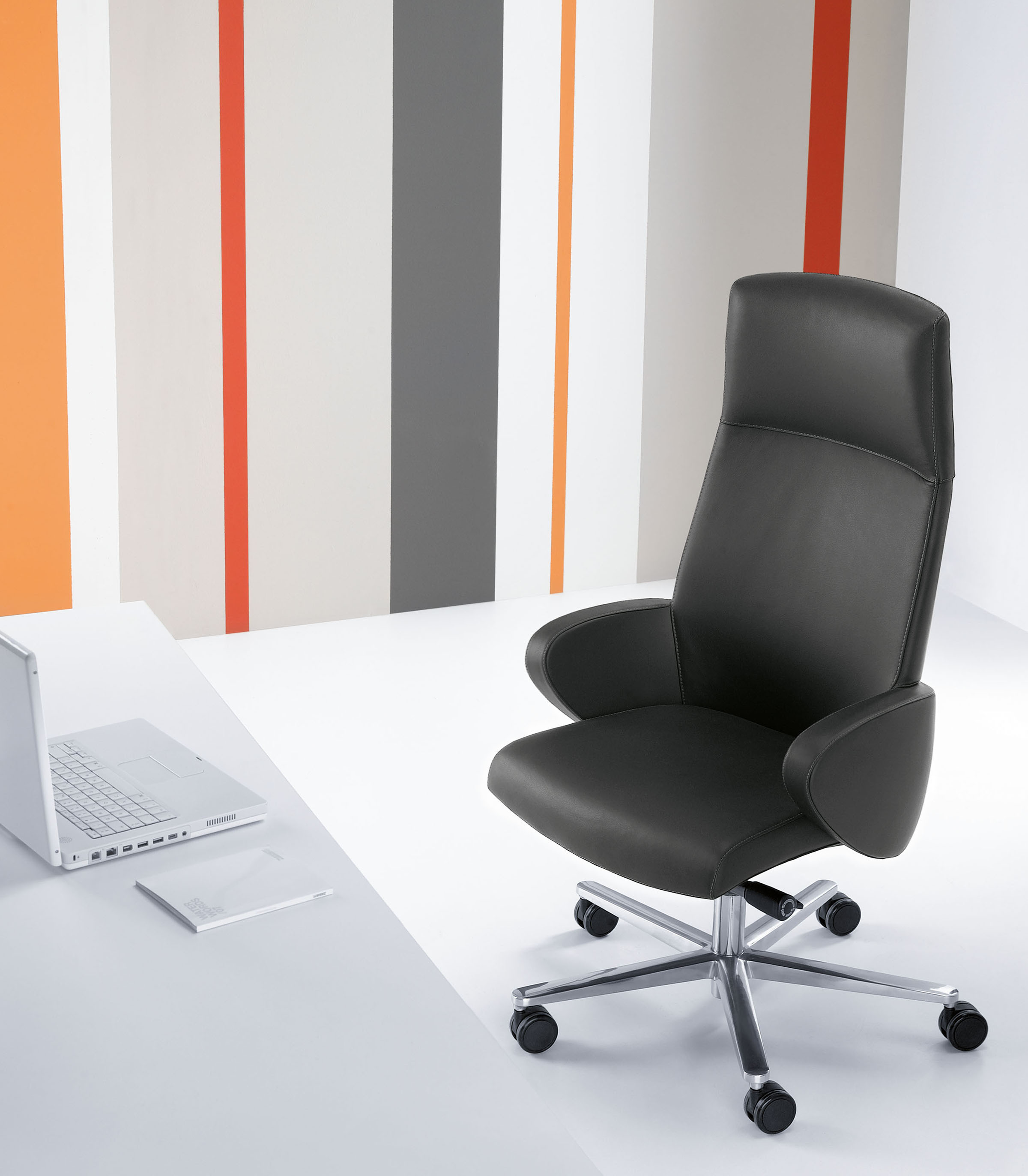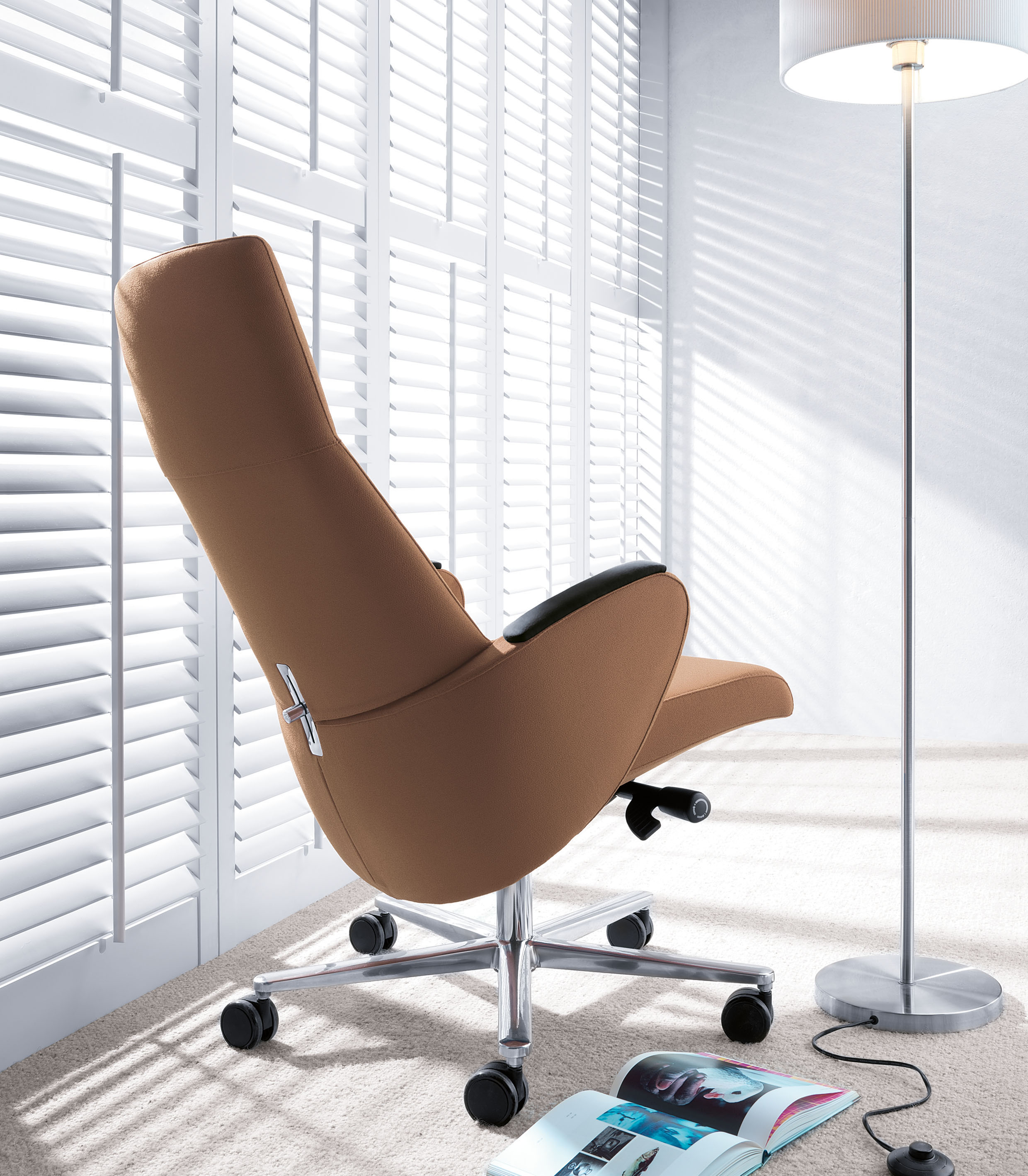 Format to komfortowy fotel gabinetowy stanowiący doskonałą propozycję dla osób ceniących wygodę i elegancję. Jego oryginalnie wyprofilowane oparcie, łagodnie zaokrąglone podłokietniki oraz precyzyjne wykończenia nadają fotelowi wyjątkowego charakteru. Rozwiązaniem, które umożliwia wielogodzinne siedzenia w komfortowych warunkach jest ergonomiczne siedzisko, oparcie oraz mechanizm synchro. Dodatkowym atrybutem jest możliwość regulacji podparcia lędźwiowego, co zapewnia utrzymanie bezpiecznej i zdrowej dla kręgosłupa pozycji. Dzięki w całości tapicerowanemu kubełkowi i pełnym podłokietnikom fotel podkreśla oryginalność przestrzeni w biurze.